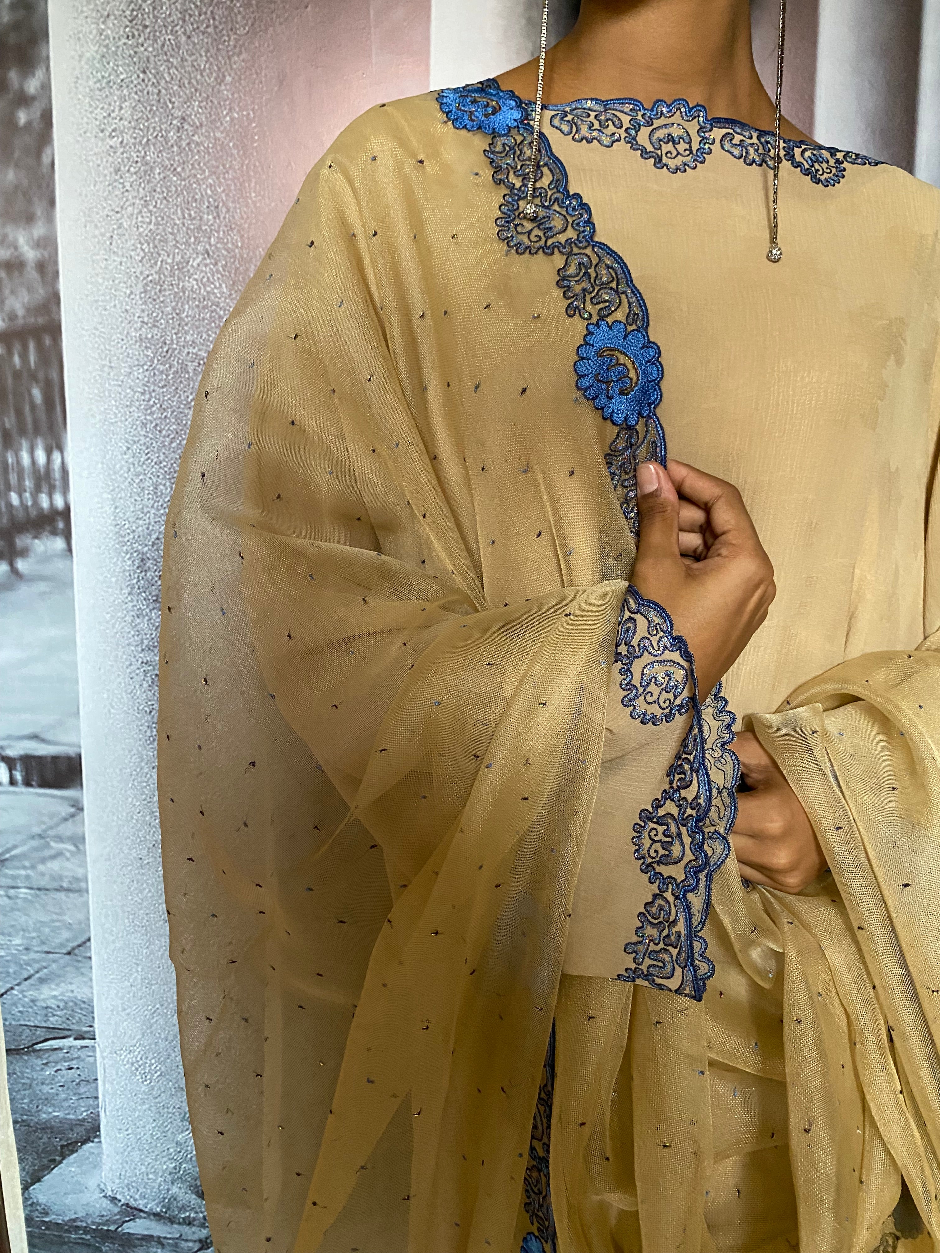 Gulabo - Bahira Silk Chiffon + Blended Satin Biege Navy Eastern Wear For Women - 4 Piece