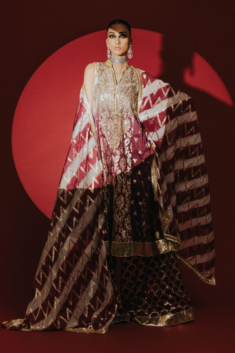 This outfit features a hand-woven jacquard fabric, known for its intricate patterns and texture, crafted on a traditional loom. The ensemble includes a dupatta and shirt that have been dip-dyed, creating a gradual blend of color. The shirt is elegantly embellished with delicate sequins, adding a touch of sparkle and sophistication to the overall look. This combination of traditional weaving techniques, modern dyeing methods, and subtle embellishments makes the outfit both stylish and culturally rich, perfect for occasions where you want to showcase timeless elegance with a hint of contemporary flair.