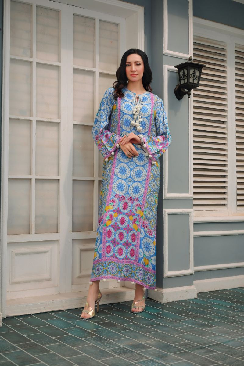 This stunning outfit commands attention with its vibrant summer-inspired colors on luxurious fabric, effortlessly combining grace and sophistication for a truly timeless look.