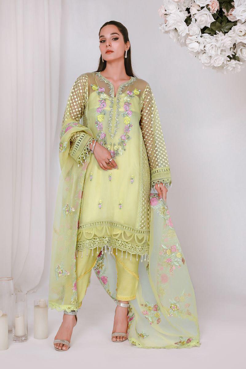 Reema Ahsan - NIDA - Organza - Lemon yellow - 3 Piece