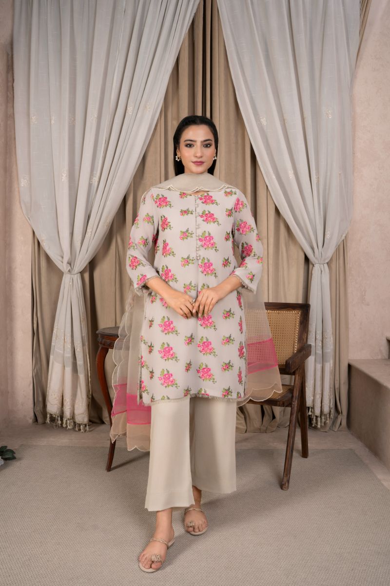 Reema Ahsan - Tahi - Georgette & Organza - Grey - 3 Piece