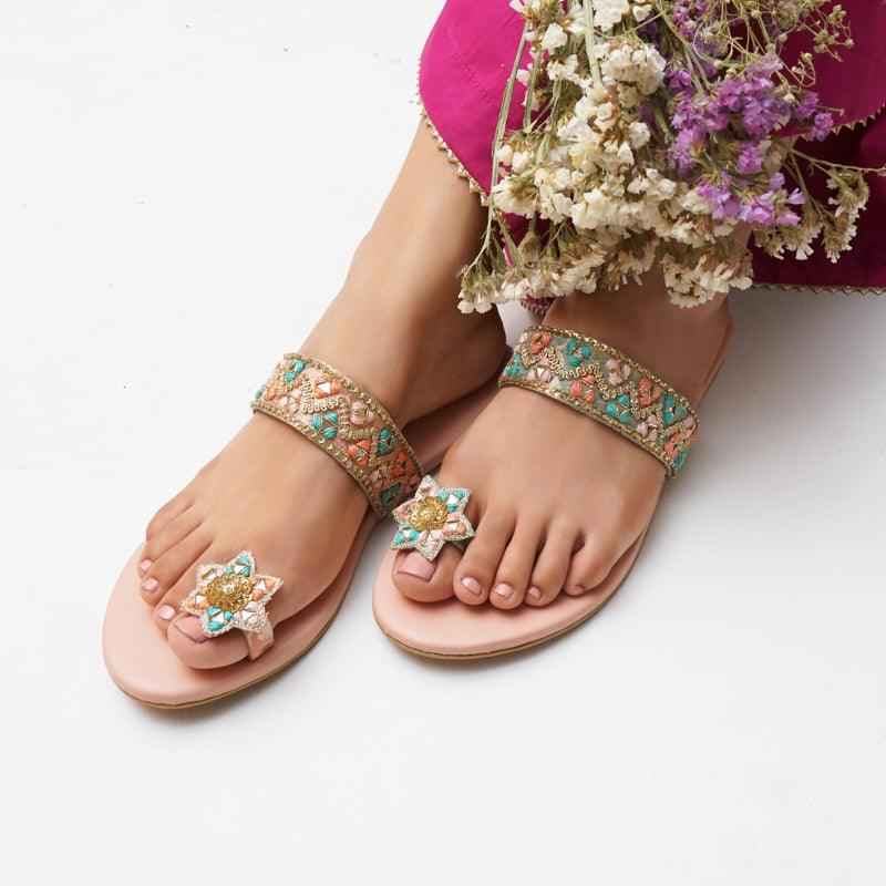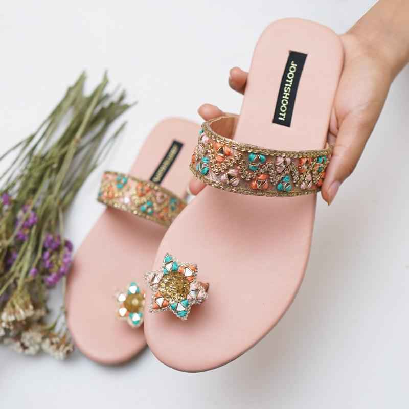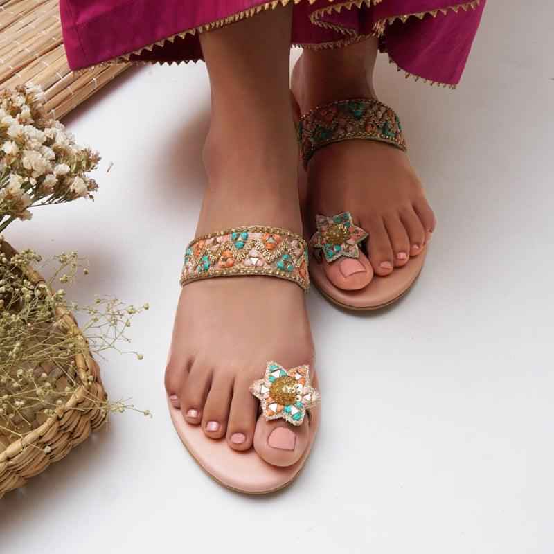 Mirror, thread, and a touch of tradition – our Banarsi Rimjhim slides are a work of art for your feet! 🪡 ✨ Celebrate craftsmanship that tells a story with every step you take.