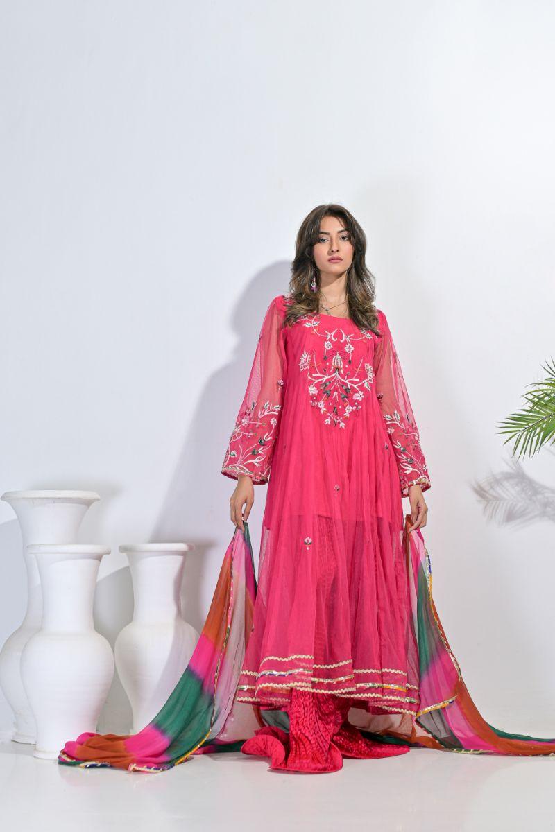 Rubys Couture - Pink maxi- Naza - Net, Silk & Chiffon - 3 Piece