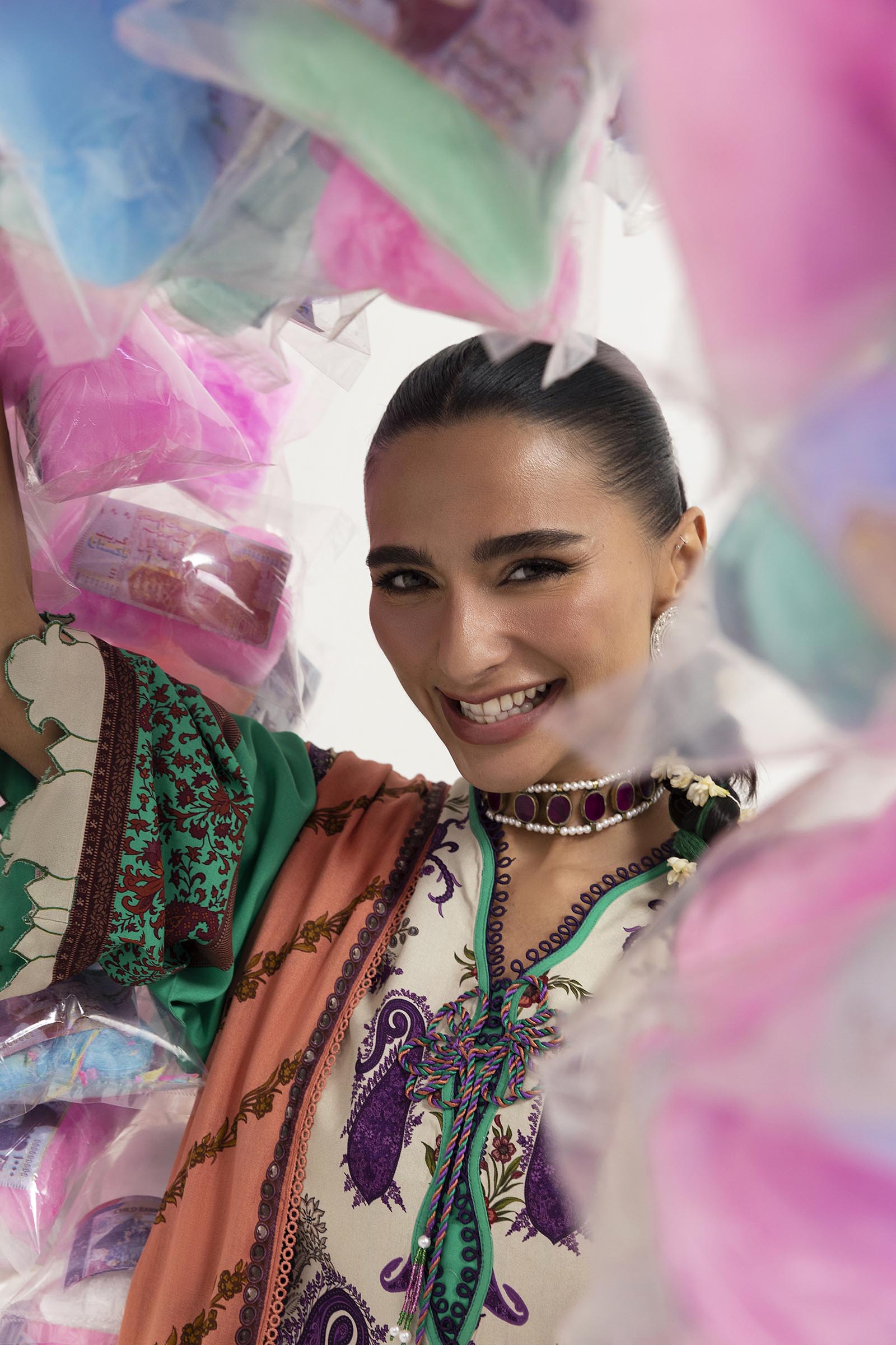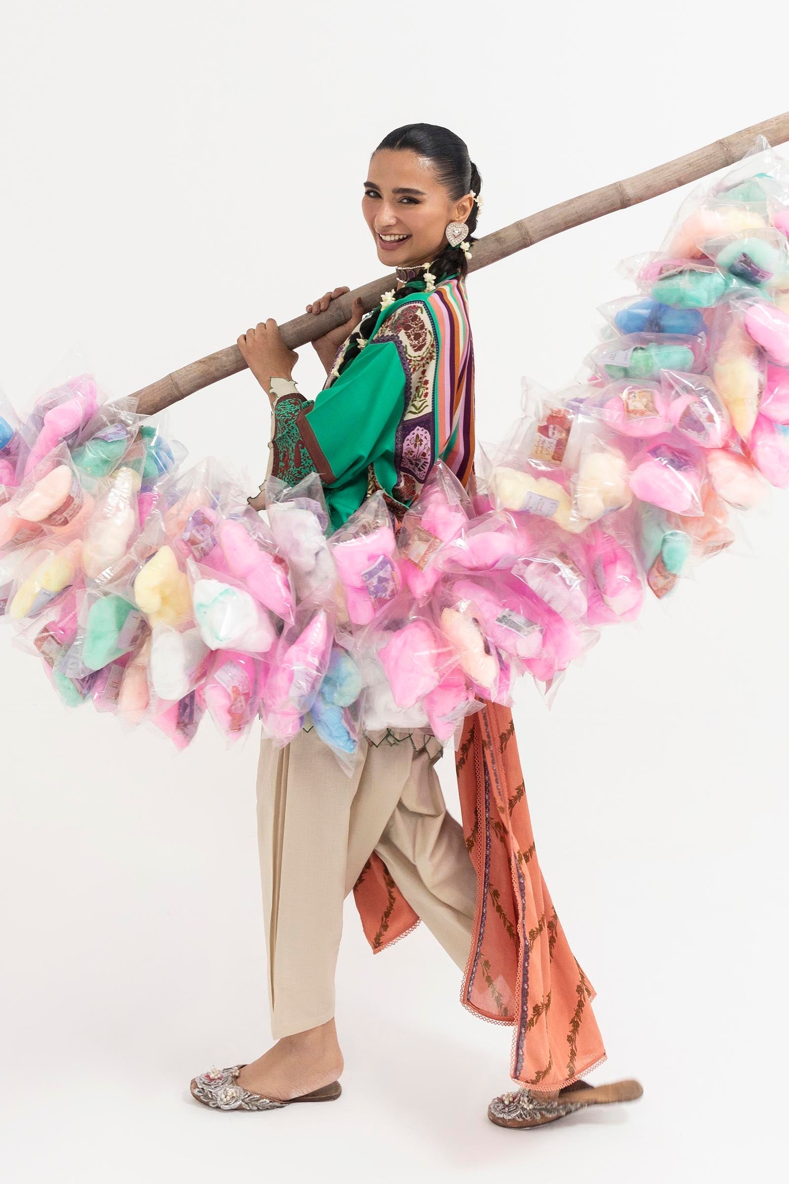Motif-inspired digital-printed shirt in vibrant multi-colors, paired with a trellis-style diagonal stripe rotary-printed dupatta. D 07 (B) (2 Pc) • Digital Printed Shirt Front On Linen 1.15 mtr • Digital Printed Shirt Back On Linen 1.15 mtr • Digital Printed Sleeves On Linen 0.65 mtr • Rotary Printed Dupatta On Linen 2.5 mtr Indian paisley style set designed digital printed shirt on multi-color along with Trellis style diagonal stripe rotary printed dupatta.