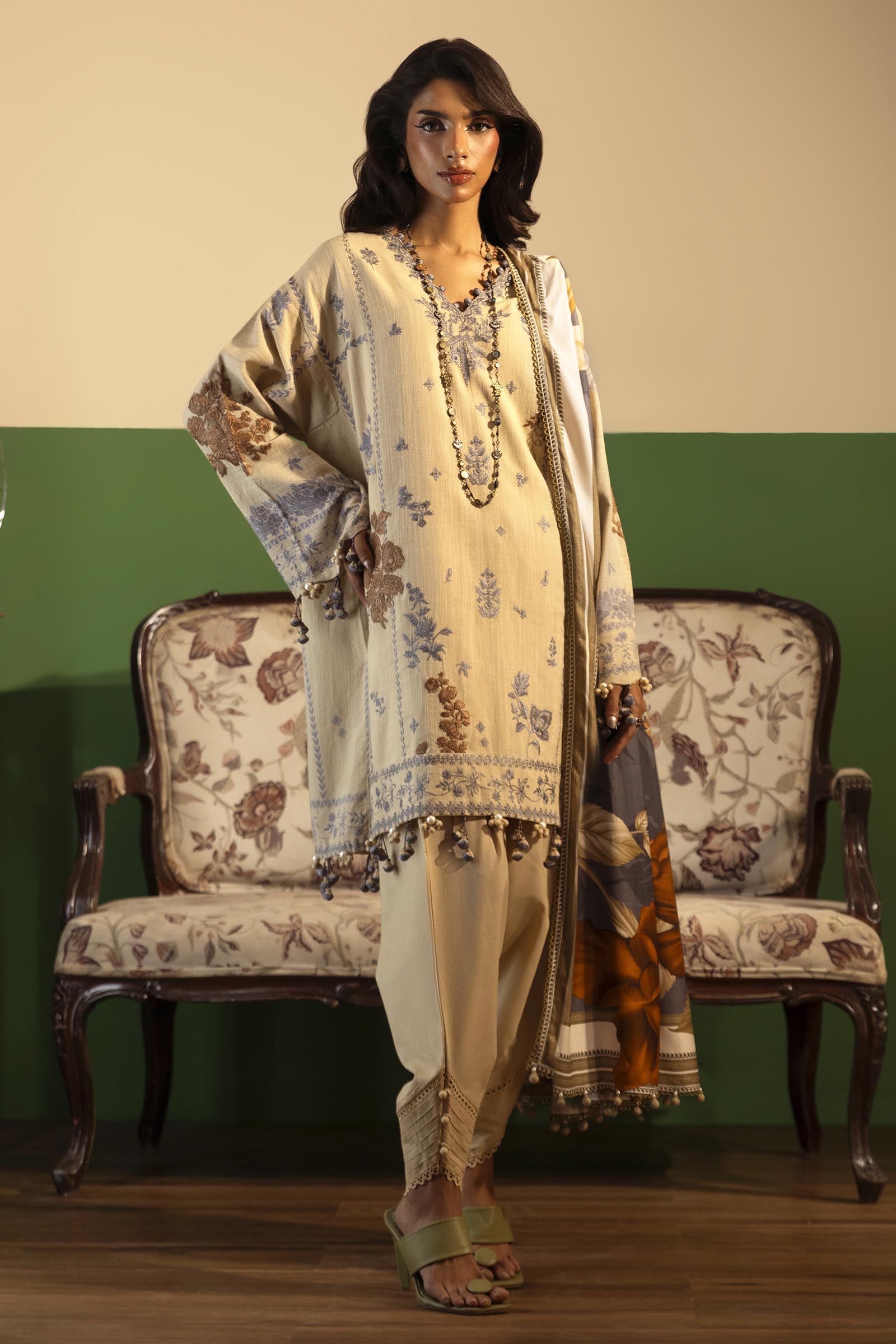 | Embroidered Front Kali On Slub | 3 Pieces |
