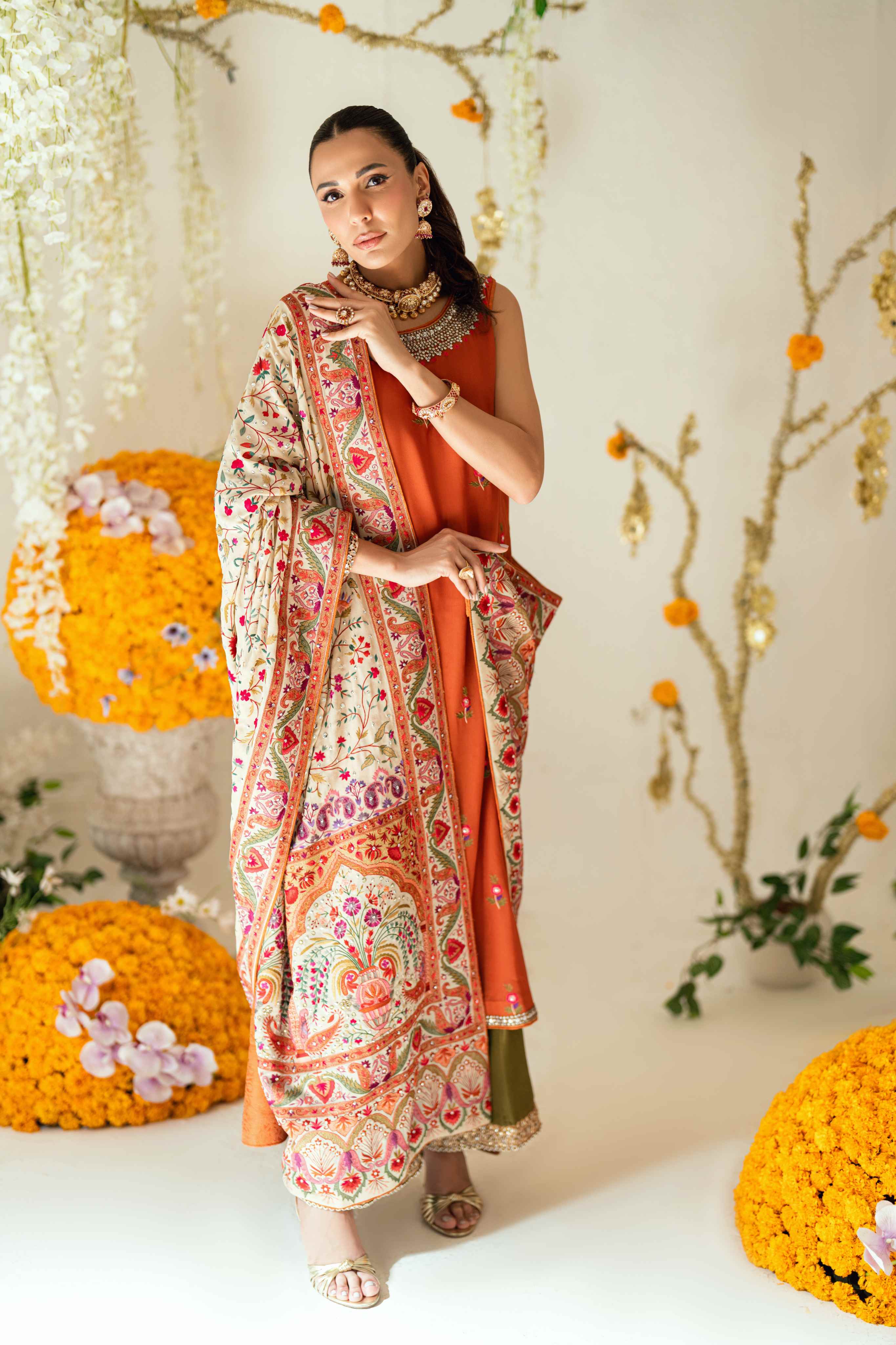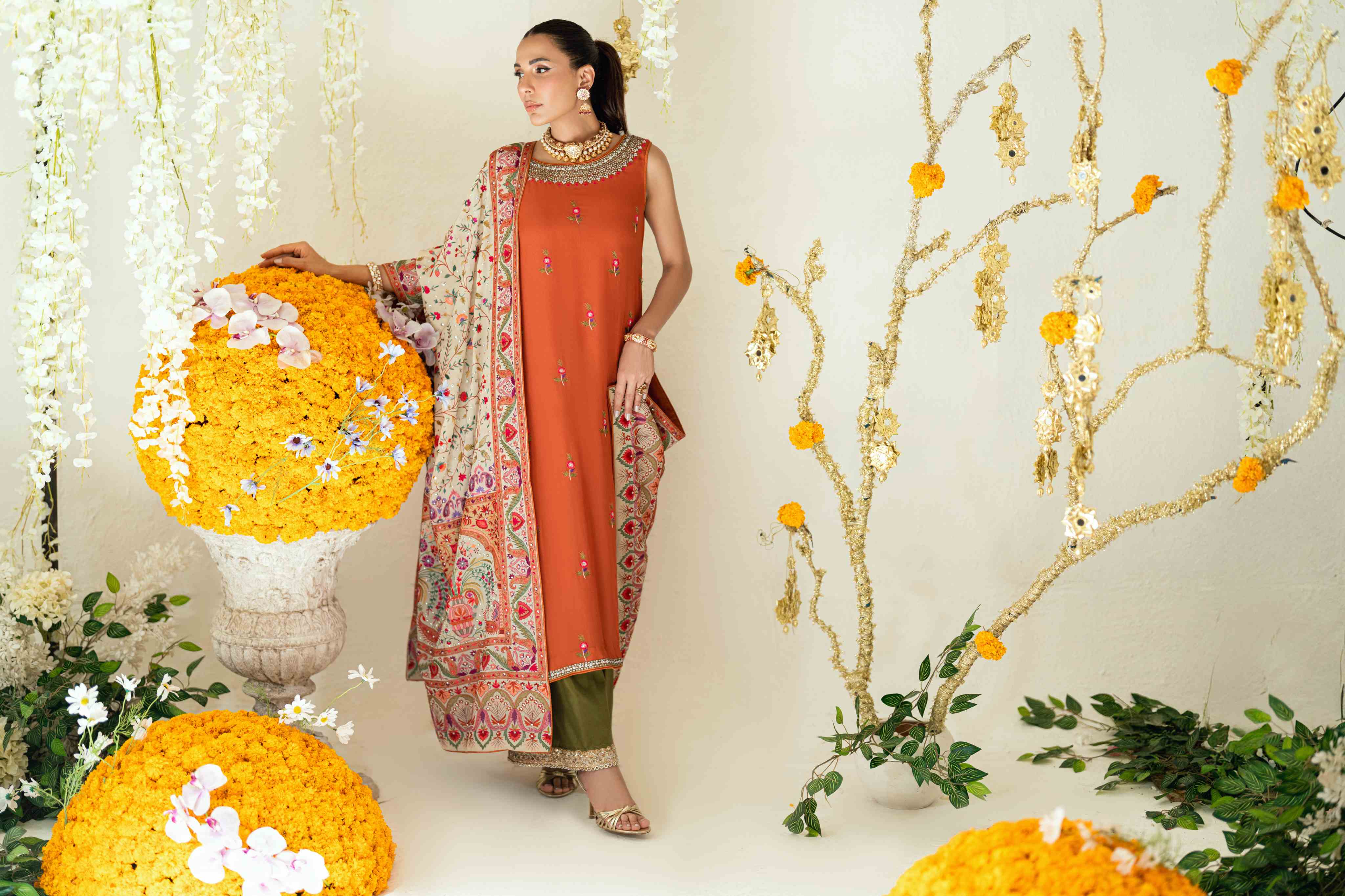Shehrnaz - Rina Rust Two-Piece Set - SHK-1577 - Rust - Chiffon - 3 Piece