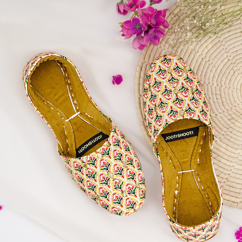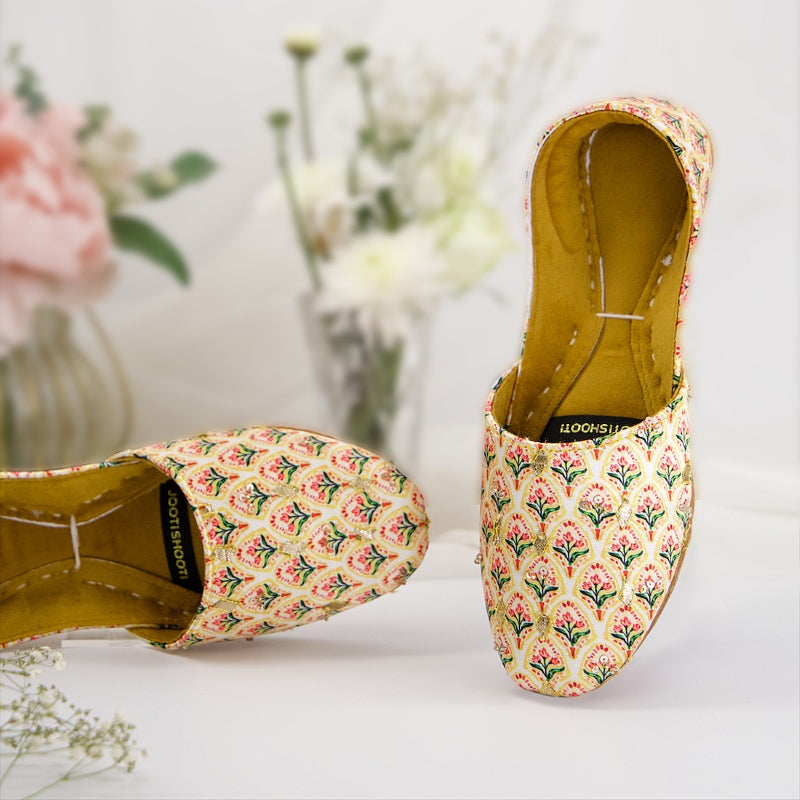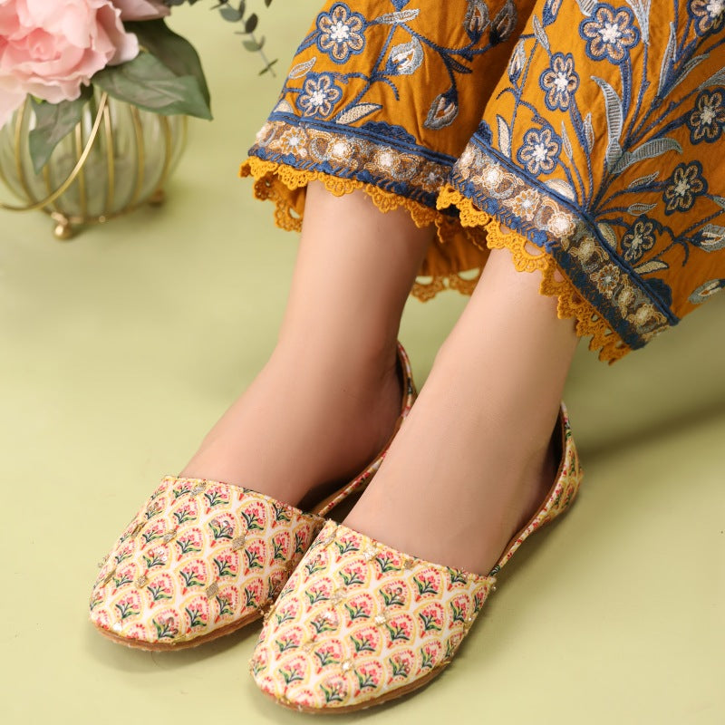 Experience the vibrant artistry of Pakistan with our "Sundus" Nawabi Khussas. Order yours today and step into handcrafted sunshine!