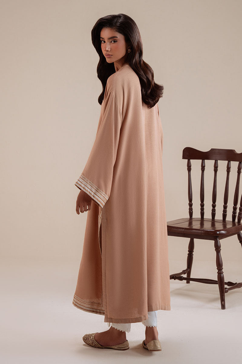 Elevate your wardrobe with this expertly crafted loose-fit karandi shirt. The front showcases intricate embroidery work that commands attention, while the back features a sophisticated plain dyed finish for balance. A classic crew neck with placket detail provides timeless appeal, and embroidered sleeves add refined texture throughout. Perfect for those who appreciate quality craftsmanship and understated elegance in their everyday wear.