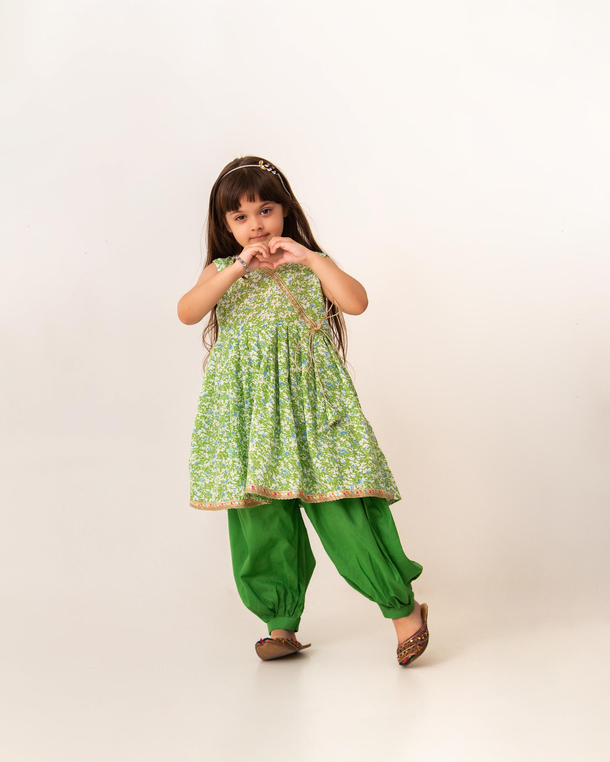 Let your little one bloom in style this season! This breezy cotton lawn peplum top bursts with a fun print and sparkles with gold lace and handmade tassels. Paired with comfy jasmine-cut cotton lawn trousers, it’s a delightful pick for sunny spring and summer days.