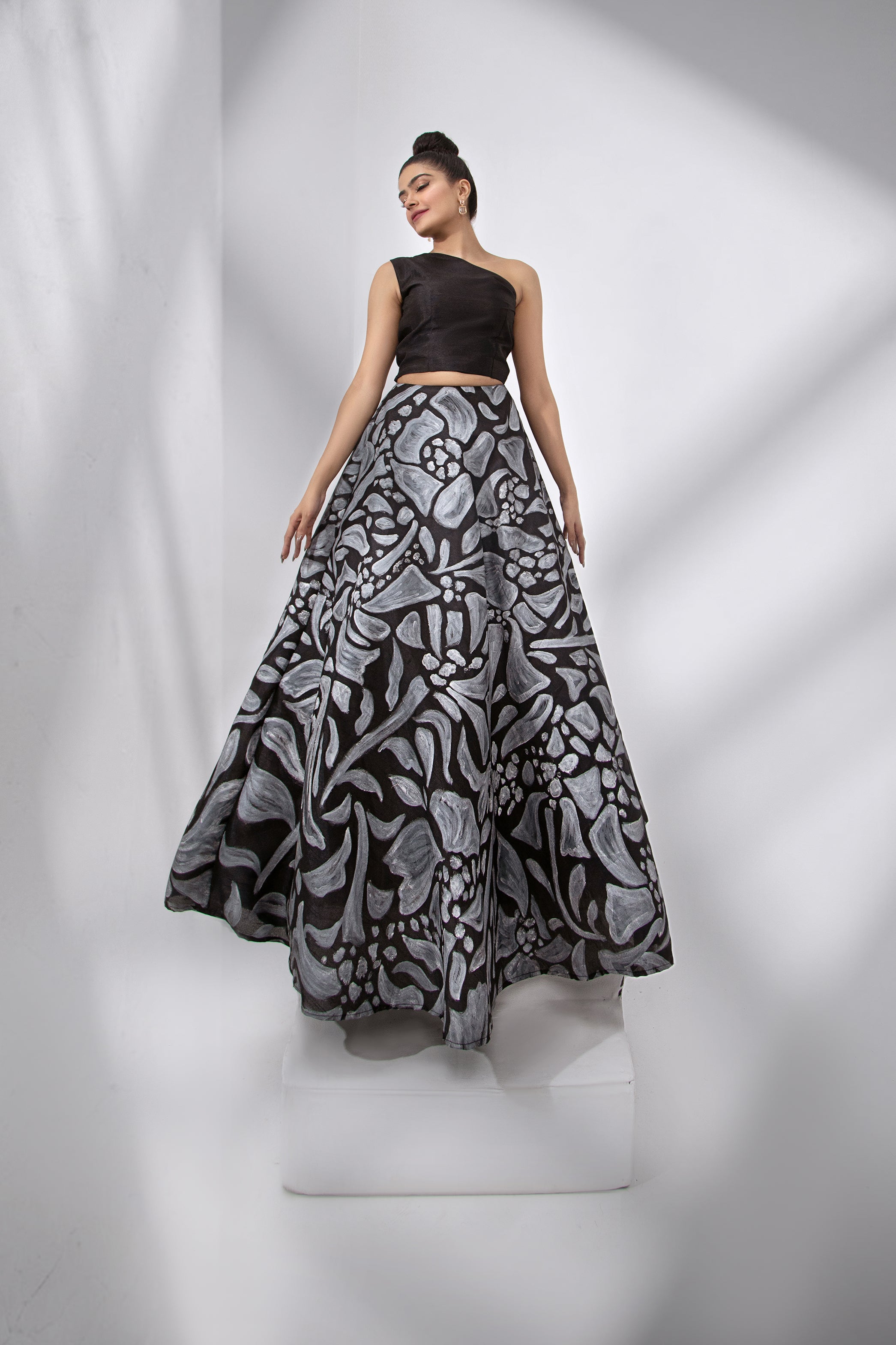 Syah - Hand Painted Skirt With Top - Black - Row Silk - 2 Piece