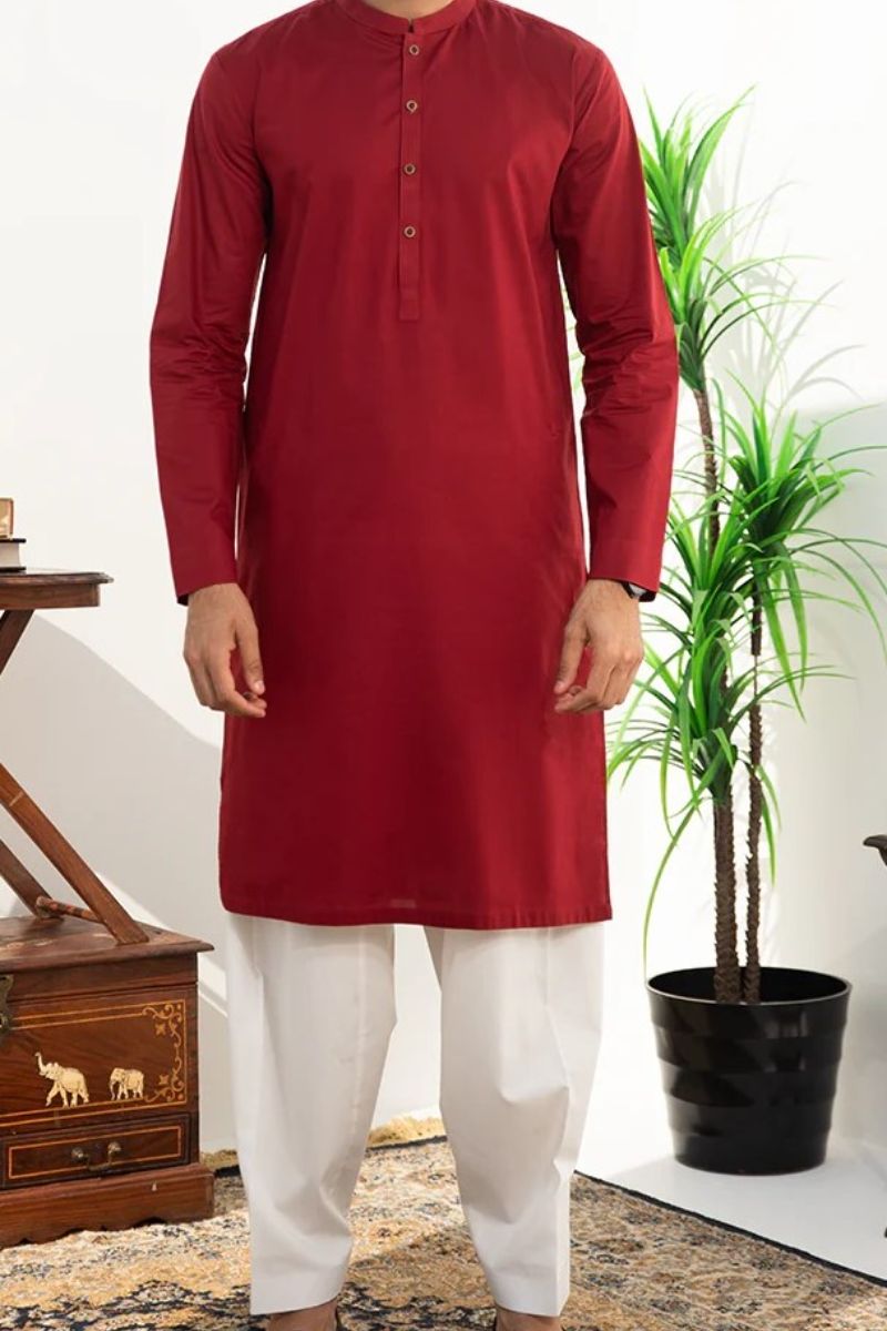 Zarar - Maroon Kurta with Plain White Bottom (Wash n Wear) - Unstitch - 2 Piece