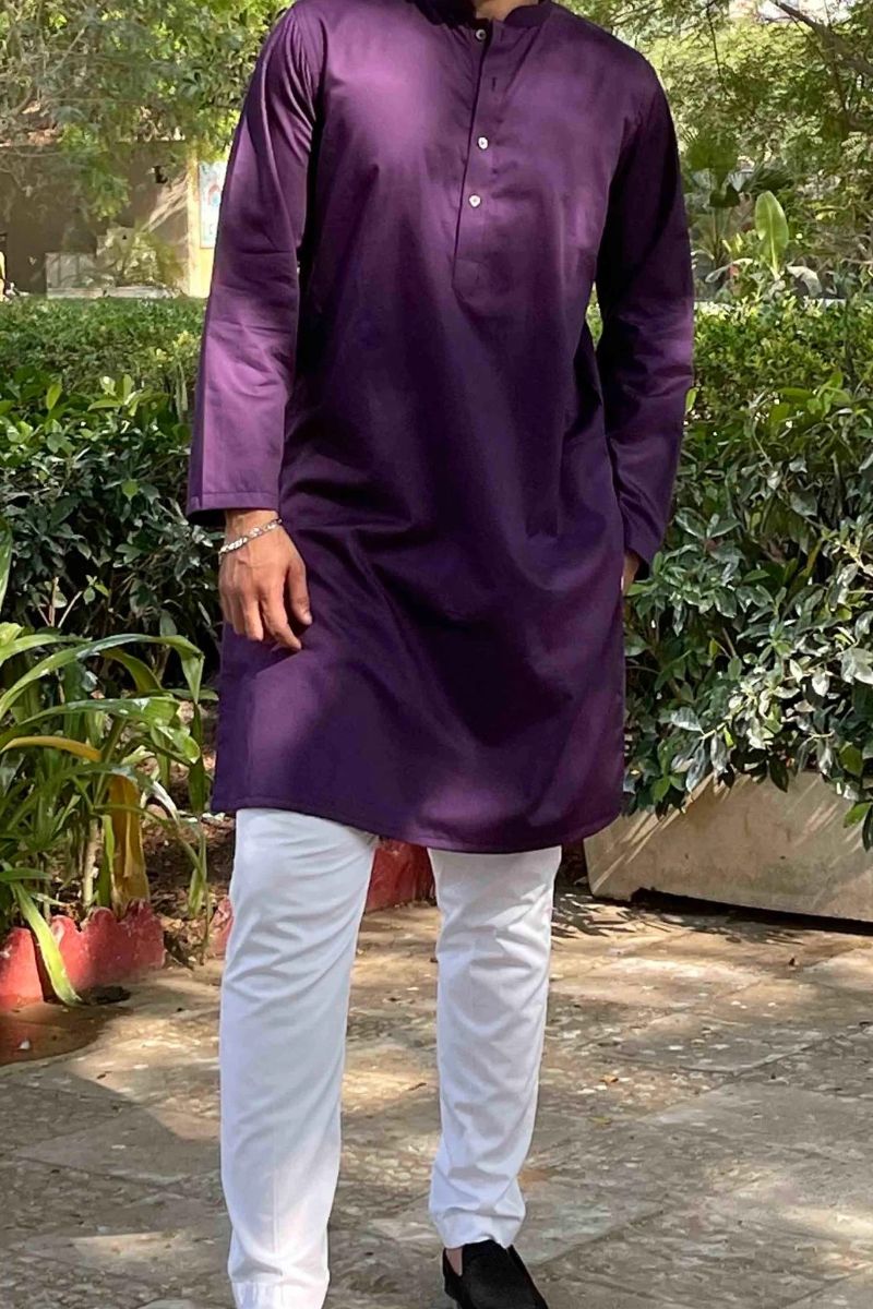 Zarar - Purple Kurta with Plain White Bottom (Wash n Wear) - Unstitch - 2 Piece